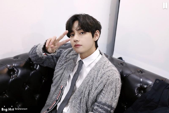 화려한 스타일링 대신 댄디하고 설레는 남친룩으로 완성한 무대도 있었다. 하얀 셔츠에 회색 가디건을 매치한 뷔는 짙은 흑발 머리로 수려한 이목구비를 뽐냈다. 눈 근처에는 손가락으로 브이(V)를 지어보이며 사랑스러움을 더했다.
