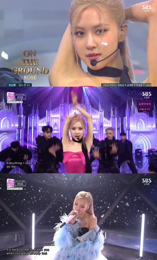 타이틀곡 'On The Ground'과 수록곡 'Gone' 두 곡으로 무대를 펼친 로제는 매력적인 음색과 우아한 퍼포먼스로 시선을 모았다.
