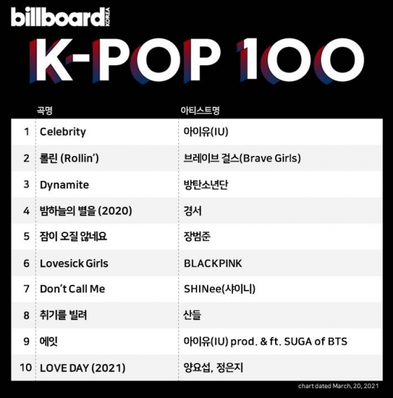 아이유 '셀러브리티' 빌보드 K-POP100 7주째 1위[공식]