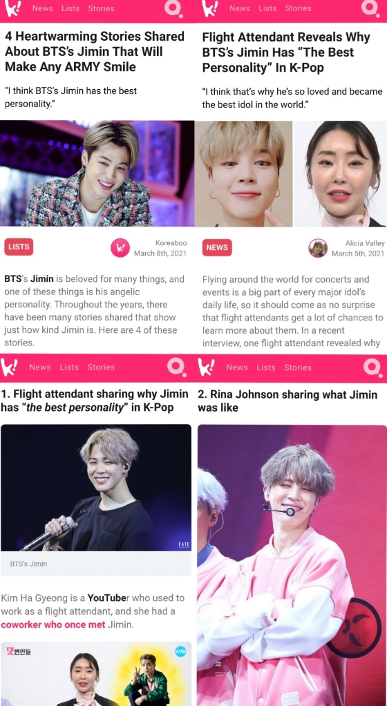 코리아부는 ‘방탄소년단 지민의 미담은 팬들을 미소짓게 한다’며 타의 추종을 불허하는 실력과 외모, 더불어 훌륭한 인성까지 '퍼펙트'한 K팝의 프론트맨으로 칭찬받고 있는 지민에게 박수를 보냈다.
