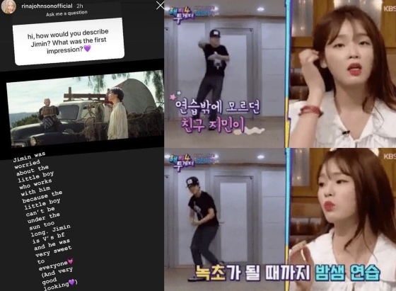 방탄소년단 정규 4집 타이틀 곡 ‘ON’ 뮤직비디오에 출연한 아역배우 리나 존슨의 일화로 ‘지민은 함께 촬영한 어린 소년이 햇빛 아래 오래 있어서 걱정했다. 지민은 모두에게 다정했고 정말 잘생겼다’고 말한 훈훈 일화를 전했다.