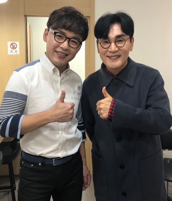 24일 소속사 톱스타 엔터테인먼트를 인스타그램을 통해 공개된 사진에는 이성국과 조항조가 환한 미소를 지으며 우승을 위해 엄지 손가락을 치켜세우며 서있다.
