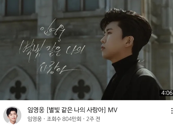 가수 임영웅의 '별빛 같은 나의 사랑아' 뮤직비디오가 공식 채널에서 유튜브 조회수 800만뷰를 돌파했다.