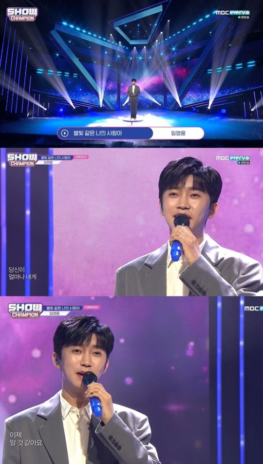 임영웅이 24일 방송된 MBC M, MBC에브리원 '쇼! 챔피언'에 출연, '별빛 같은 나의 사랑아' 무대를 선보이고 있다. /사진=화면 캡쳐