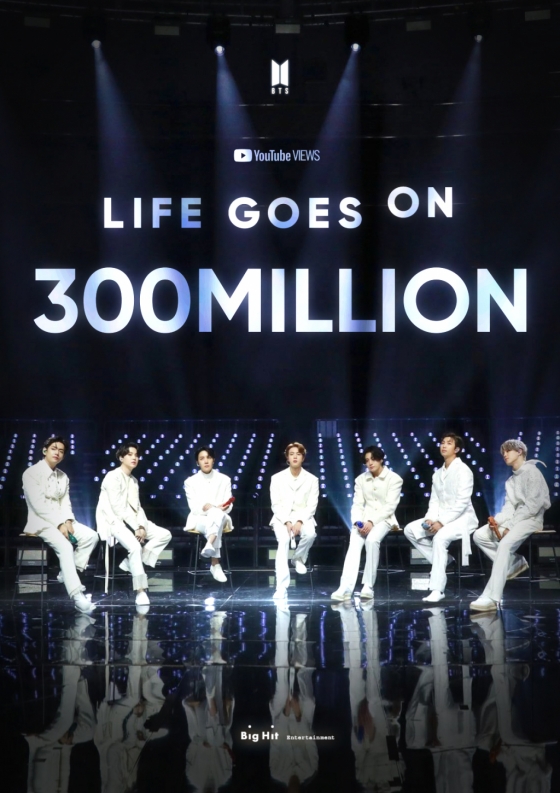 27일 빅히트엔터테인먼트에 따르면 방탄소년단이 지난 2020년 11월 발매한 'BE' 타이틀 곡 'Life Goes On' 뮤직비디오의 유튜브 조회수는 이날 오후 2시 18분경 3억뷰를 넘었다. 이는 방탄소년단의 통산 15번째 3억뷰 달성 뮤직비디오이다.