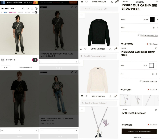 지난 1월 21일 루이비통 'Men’s Fall-Winter 2021 Fashion Show | LOUIS VUITTON' 영상에서 지민이 착용했던 137만원 짜리 흰색 니트는 16개국 이상 대부분의 사이즈를 품절시켰다.
