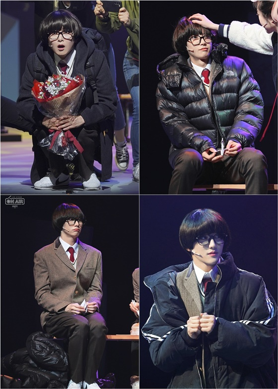 '온에어-비밀계약' 측은 30일 남자 주인공 DJ애런(안두리)의 과거 모습을 담은 사진을 공개했다. 려욱, 이진혁, 빅톤 강승식, 골든차일드 홍주찬은 '초코송이'를 연상케 하는 바가지 머리 가발을 쓴 채 순수하고 귀여운 매력을 발산했다.