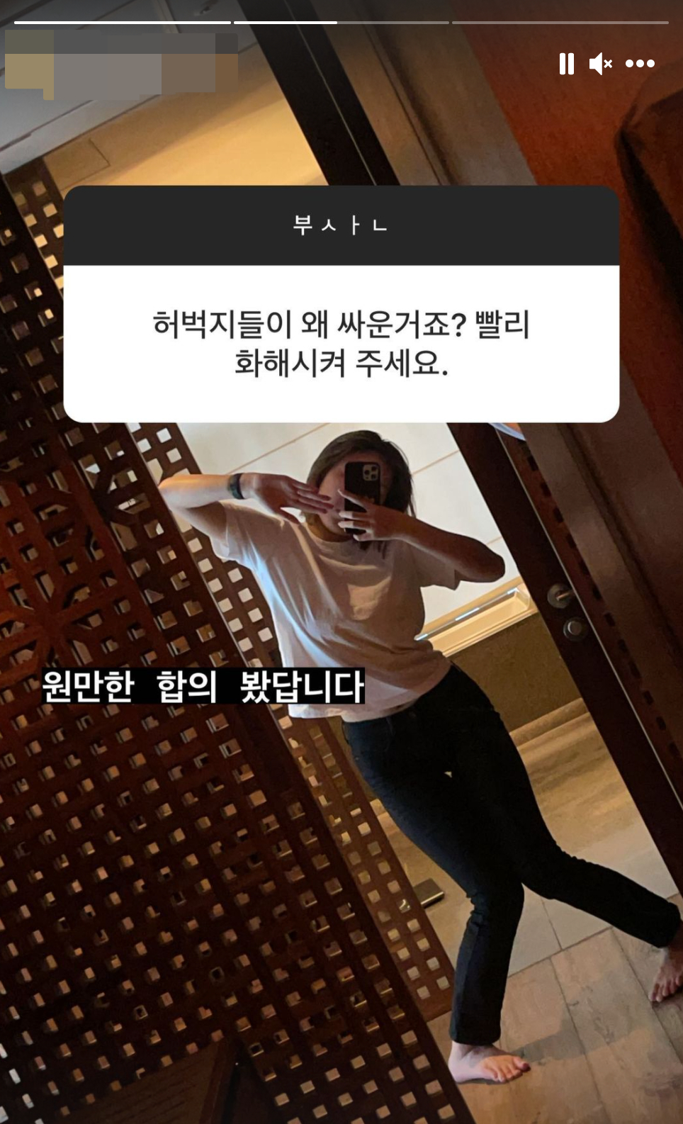 또한 부산으로 여행을 갔음을 알리기도 한 이영지는 "허벅지들이 왜 싸운 거죠?빨리 화해시켜 주세요"라는 한 팬의 질문에 "원만한 합의 봤답니다"라며 재치 넘치는 포즈를 선보이기도 했다.