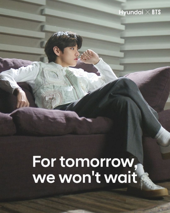 방탄소년단이 모델로 활약 중인 현대자동차 공식 인스타그램 현대라이프스타일은 지난 15일 뷔의 사진을 공개했다. 오는 4월 22일 지구의 날을 맞아 방탄소년단과 현대가 함께한 새로운 영상을 예고하는 사진으로 기대감을 높였다.