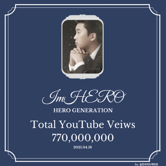 임영웅 유튜브 채널 '임영웅'은 18일 오전 기준 조회 수 7억 7000만을 넘어섰다. 지난 3월 15일 7억 뷰 고지 돌파 한 달여 만에 7000만 뷰 증가세를 이끌어 내며 또 하나의 역사를 썼다.