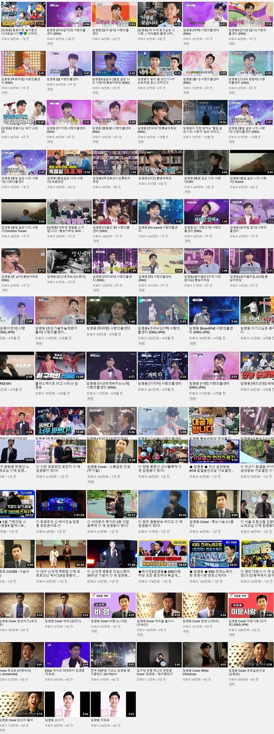2011년 11월 2일 개설된 임영웅의 유튜브 채널은 '미스터트롯' 진(眞) 등극 후 성공한 가수 임영웅의 모습만 담고 있지 않다. 데뷔곡 '미워요'부터 커버 영상, 바닷가 거리 공연, 노래교실, 지역축제 무대 등 데뷔부터 현재까지 '가수 임영웅사(史)'가 망라돼 있다.