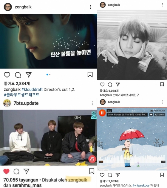 또한 지난해 뷔가 자작곡 '스노우 플라워'(Snow Flower)를 크리스마스에 발표했을 때도 감독은 "와 좋네"라는 짧은 감탄사와 함께 사운드 클라우드에서 감상한 인증샷을 올려 '눈여겨봐야겠다'는 말을 입증하고 있다.