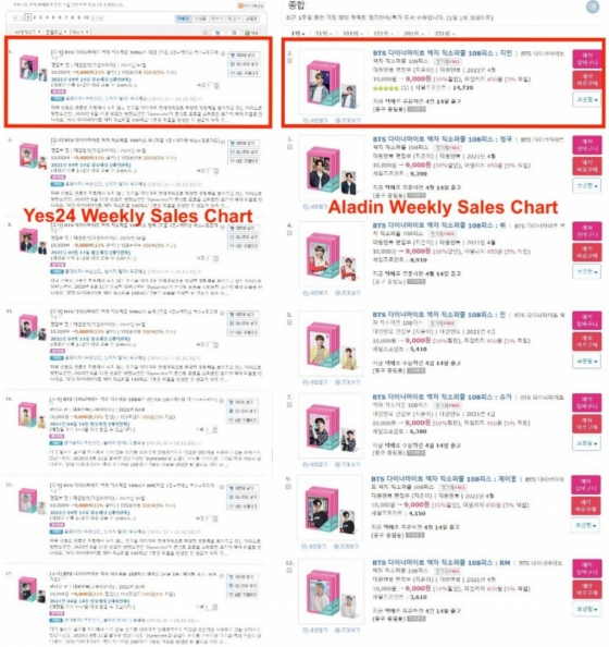 '예스24' 주간베스트 전체 6일 연속 1위-'알라딘'도 7일간 BTS 멤버 1위