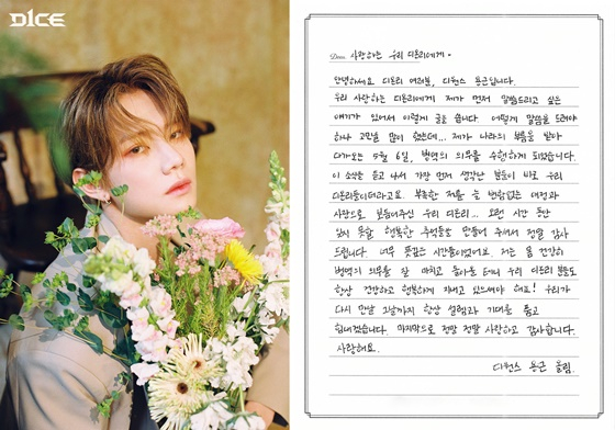 그룹 디원스(D1CE)의 리더 조용근이 입대 소식을 알리며 팬들에게 자필편지로 인사했다.