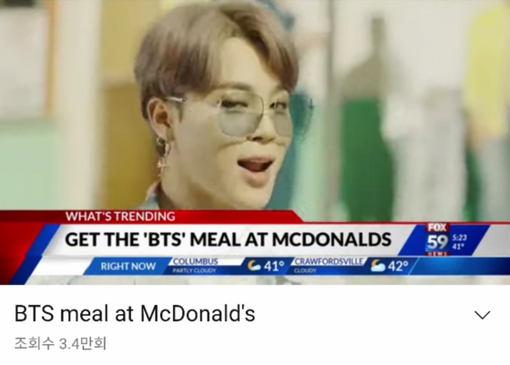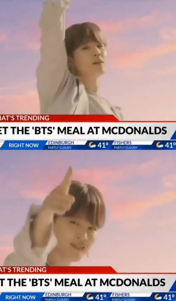 미국 TV 뉴스채널 폭스59 뉴스(Fox59News)는 새롭게 출시될 맥도날드 'The BTS 세트'에 지민의 개인파트로 구성된 영상을 최근 보도했다.