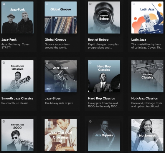 한편, 스포티파이의 재즈 허브에는 더욱 세분화된 장르와 취향에 맞춘 재즈 플레이리스트가 수록되어 일상 속 24시간 동안 함께할 수 있는 다양한 재즈 음악을 만나볼 수 있다. 뿐만 아니라 라틴, 아르헨티나, 영국, 독일, 이스라엘, 베트남, 일본 등 국경을 넘어 전 세계의 다양한 재즈 음악을 폭넓은 플레이리스트를 통해 감상할 수 있다.