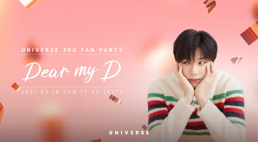 팬파티 'Dear My D' 온라인 라이브 스트리밍은 응모권 5장 이상 사용 시 누구나 시청 가능하며, 본 영상은 추후 '유니버스' 앱에서 VOD로도 제공될 예정이다.