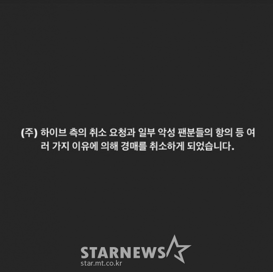 방탄소년단 지민 팬덤은 경매 취소를 받아들일 수 없다는 입장이다.