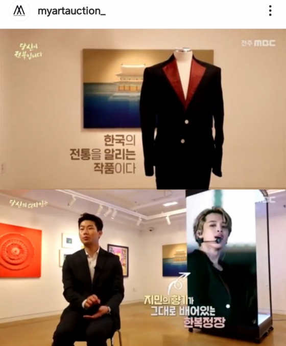 김리을 디자이너의 작품인 지민의 한복은 미국 NBC '더 투나잇 쇼'의 'BTS Week'에서 경복궁 근정전을 배경으로 '아이돌'(IDOL)무대에서 지민이 착용한 개량 한복 정장으로, 무대를 압도한 카리스마와 아름다움으로 전 세계에 한국의 미(美)를 각인시킨 공로를 인정받아 시작가 500만원으로 경매가가 예정됐다.