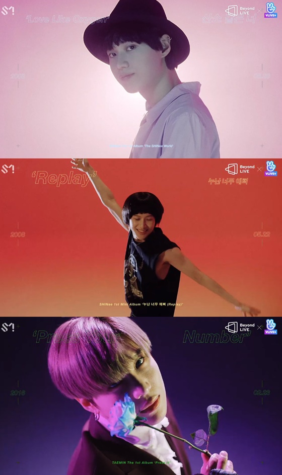 또 데뷔곡 '누난 너무 예뻐'부터 '산소 같은 너', 'Dream Girl', 솔로곡 '괴도' 'Press Your Number' 등 당시 의상과 헤어스타일 그대로 재현한 영상도 공개됐다. 13년이 흘러도 변함없는 태민의 외모가 시선을 모았다.