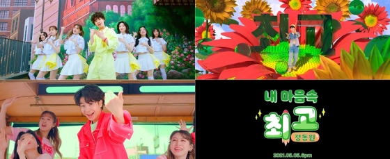 특히 영상과 함께 '내 마음속 최고'의 하이라이트 소절이 일부 공개돼 리스너들의 귀를 사로잡았다. 정동원만의 때 묻지 않은 순수하고 담백한 목소리와 엄지손가락을 내미는 중독성 넘치는 포인트 안무가 신곡과 뮤직비디오에 대한 기대감을 증폭시켰다.