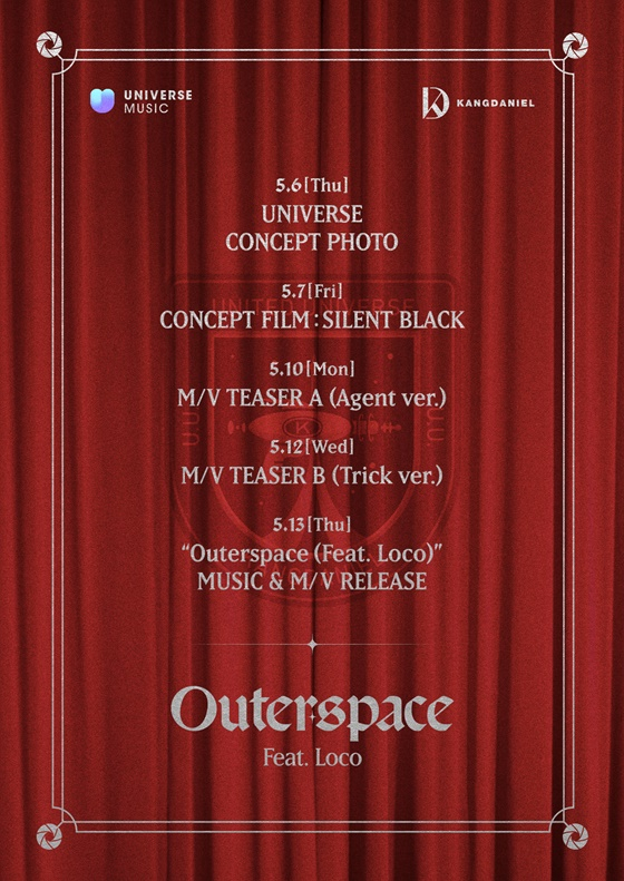 한편, 강다니엘의 'Outerspace (Feat. 로꼬)'는 오는 13일 오후 6시 각종 음원 사이트를 통해 감상할 수 있으며, 뮤직비디오는 유니버스 앱에서 독점 공개될 예정이다.