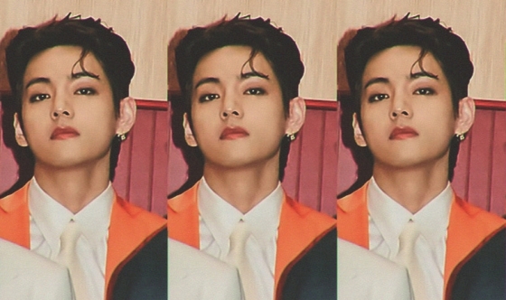 적당히 각이 진 귀밑 턱과 굵은 목선은 섹시한 남성미를, 매끈하고 짧은 턱선은 산뜻한 소년성을 부각시켜 다채로운 매력이 공존하는 화려한 아름다움을 담아내는 뷔의 미모는 밝은 오렌지색 수트보다 강렬한 흡입력으로 눈을 뗄 수 없게 했다.