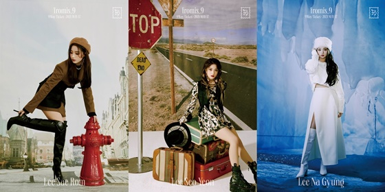 사진 속 이새롬은 이국적인 배경 그림 앞에서 갈색 베레모와 부츠 스타일링으로 도회적인 매력을 발산했고, 이서연은 도로 그림 앞 여행가방에 앉아 깊은 눈빛과 함께 걸크러시를 발산했다. 이나경은 흰색 털모자와 니트를 착용하고 차가운 얼음 배경 앞에서 유니크한 분위기를 선보였다.