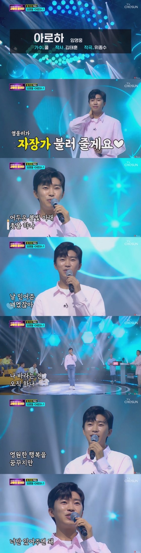 영상은 이날 방송된 '사랑의 콜센타' 잘자요 특집에서 임영웅이 선보인 쿨의 '아로하' 무대를 담았다.