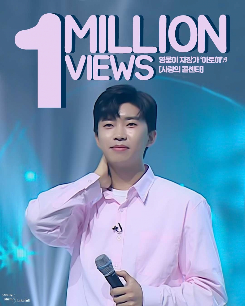 가수 임영웅의 감미로운 목소리가 귀를 사로잡는 '아로하' 무대 영상이 100만 뷰를 넘어서며 인기를 이어갔다.