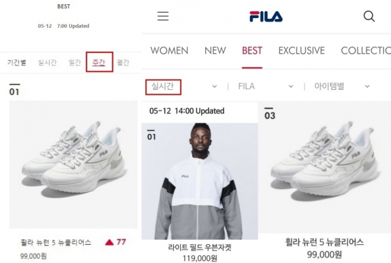 지난달 휠라가 공개한 '프로젝트 7: 백 투 네이쳐'(PROJECT 7: BACK TO NATURE) 영상에서 뷔가 착용한 패커블 재킷은 실시간 베스트 1위, 주간 베스트 1위를 시작으로 판매 이틀 만에 월간 베스트 2위에 등극하며 품절을 기록했다.