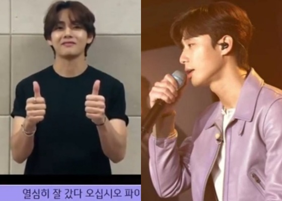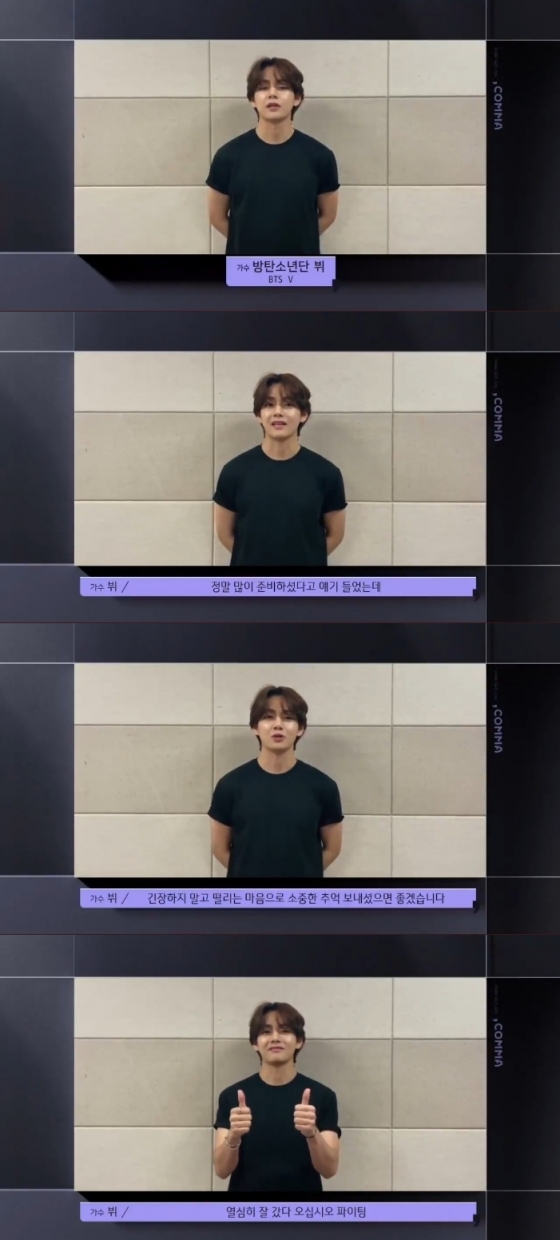 뷔는 이어 "파이팅"이라며 엄지 척 포즈로 응원을 보냈다.