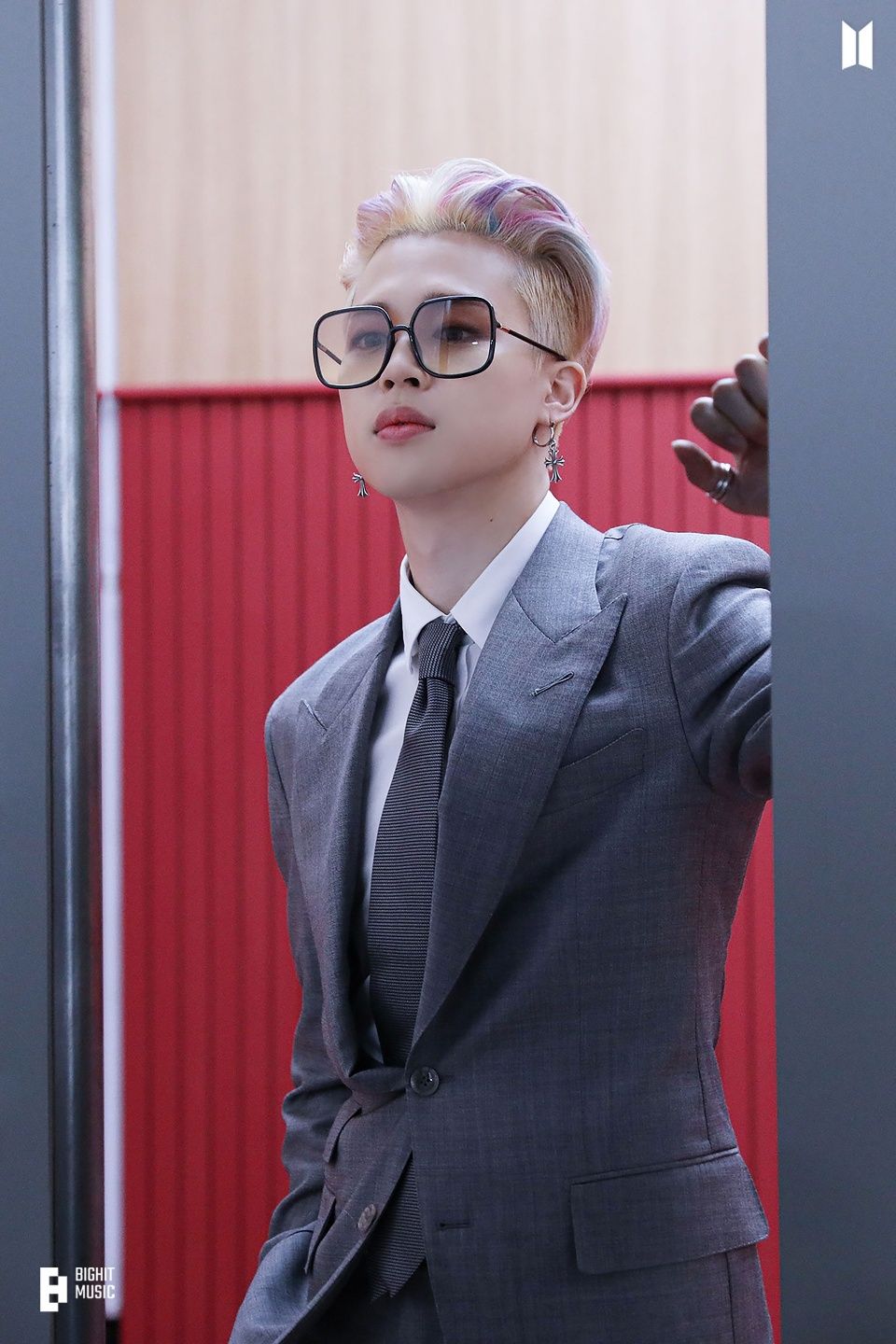 지민은 '버터' 티저 공개 당시부터 세간의 화제를 모은 무지개색 올백 헤어에 그레이 수트와 디올 틴트 선글라스로 댄디한 매력과 더불어 파격적이고 과감한 슈퍼스타 면모를 과시했다.
