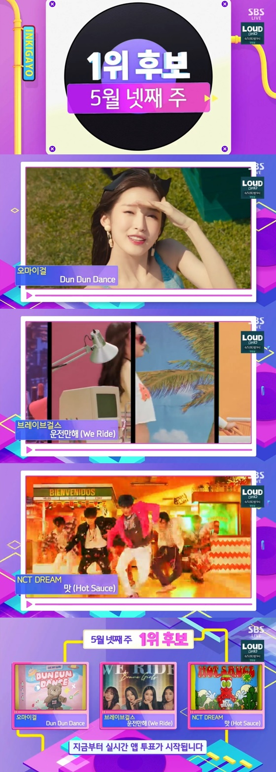 그룹 오마이걸, 브레이브걸스, NCT DREAM이 '인기가요' 1위 후보에 올라 트로피를 두고 격돌한다.