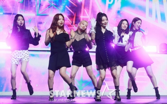 걸그룹 로켓펀치가 17일 오후 서울 용산구 한남동 블루스퀘어에서 진행된 첫 번째 싱글 ‘링링'(Ring Ring) 발매 기념 쇼케이스에서 신곡을 선보이고 있다. /2021.05.17 /사진=이동훈 기자 photoguy@
