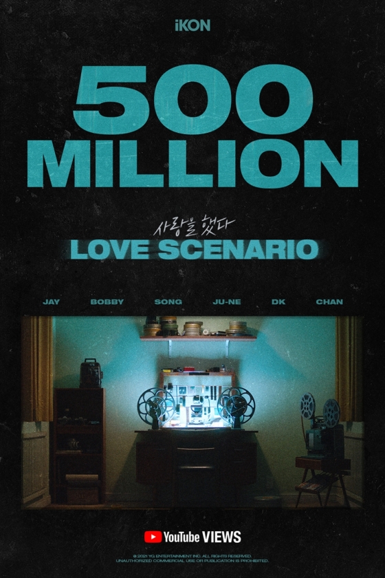 24일 YG엔터테인먼트에 따르면 '사랑을 했다'(LOVE SCENARIO) 뮤직비디오는 이날 오후 12시 22분께 유튜브 조회수 5억 회를 넘었다. 아이콘 자체 최고 기록이다.