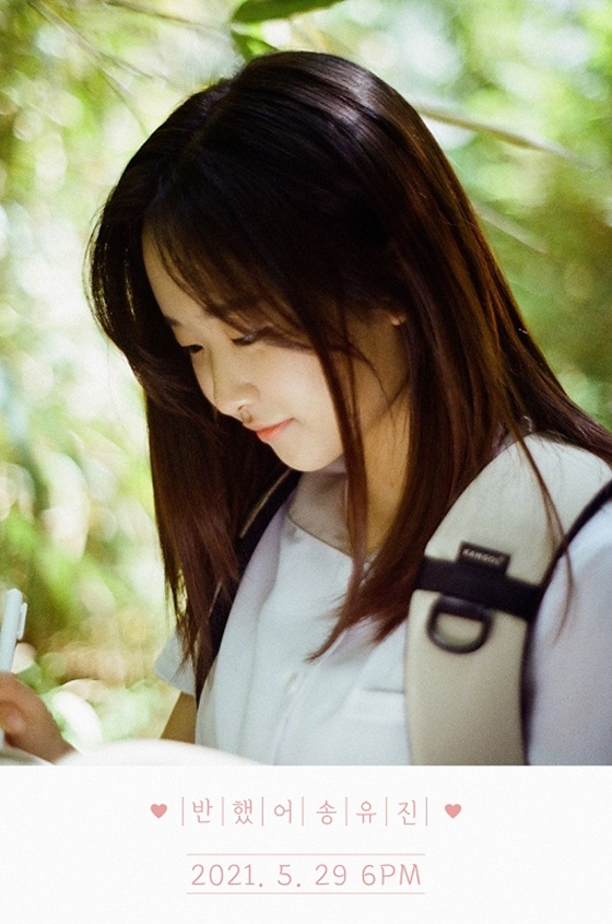 공개된 티저 이미지 속 송유진은 교복에 백팩을 맨 채 노트에 무언가를 적고 있다. 상큼하면서도 앳된 모습이 눈길을 끈다. 특히 송유진 뒤로 보이는 초록빛 숲이 한층 청량한 이미지를 더해 신곡 '반했어'에 대한 궁금증이 커지고 있다.