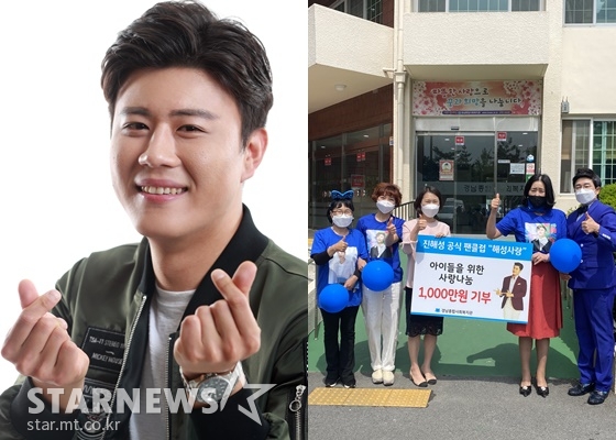 진해성 팬클럽 '해성사랑'은 진해성의 출진지역인 경남 창원시 진해구 아이들을 위해 27일 경남종합사회복지관(관장 정민화)에 기부금 1000만 원을 전달했다.