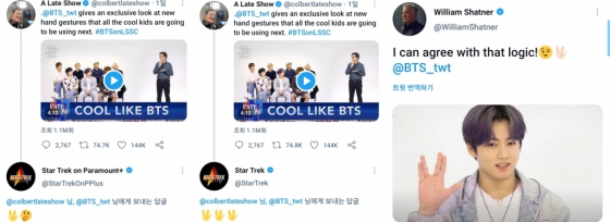 '스타트랙' 공식 계정 'Star Trek on Paramount+'은 'A Late Show' 공식 트위터 계정이 인터뷰 영상을 공개한 트윗에 '벌칸 살루트' 손 모양 이모티콘과 곰곰히 생각하는 얼굴을 한 이모티콘을 댓글에 게재해 관심을 나타냈다.