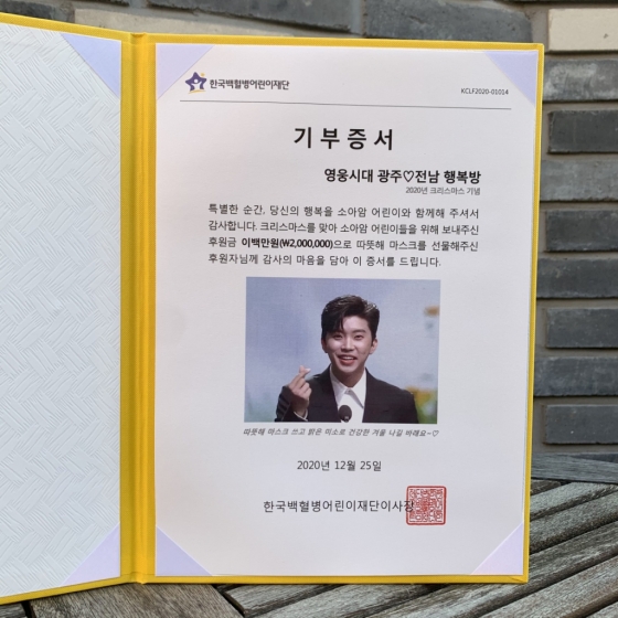 '영웅시대 광전행복방'은 코로나19 확산에 따른 방역 지침 준수로 대면 봉사가 어려워짐에 따라 기부를 중심으로 선한 영향력을 전하고 있다.