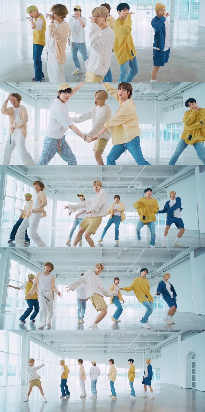 서울 웨이브아트센터에서 촬영된 이번 영상에서 통유리 너머로 보이는 시원한 한강뷰와 청량하고 산뜻한 미소년의 사랑스러움이 듬뿍 묻어난 지민의 비주얼은 '비단 위에 꽃을 더한다'는 '금상첨화'(錦上添花)를 실감케 했다.