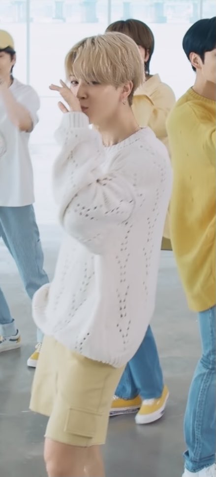 지민은 영상에서 금발 헤어에 루즈핏 니트와 베이지색 반바지, 화이트 컨버스 하이를 착용했다. 지민은 절대 동안 외모와 탄탄한 근육질 다리 라인으로 짧은 분량의 첫 등장부터 팬들의 눈을 사로잡았다.