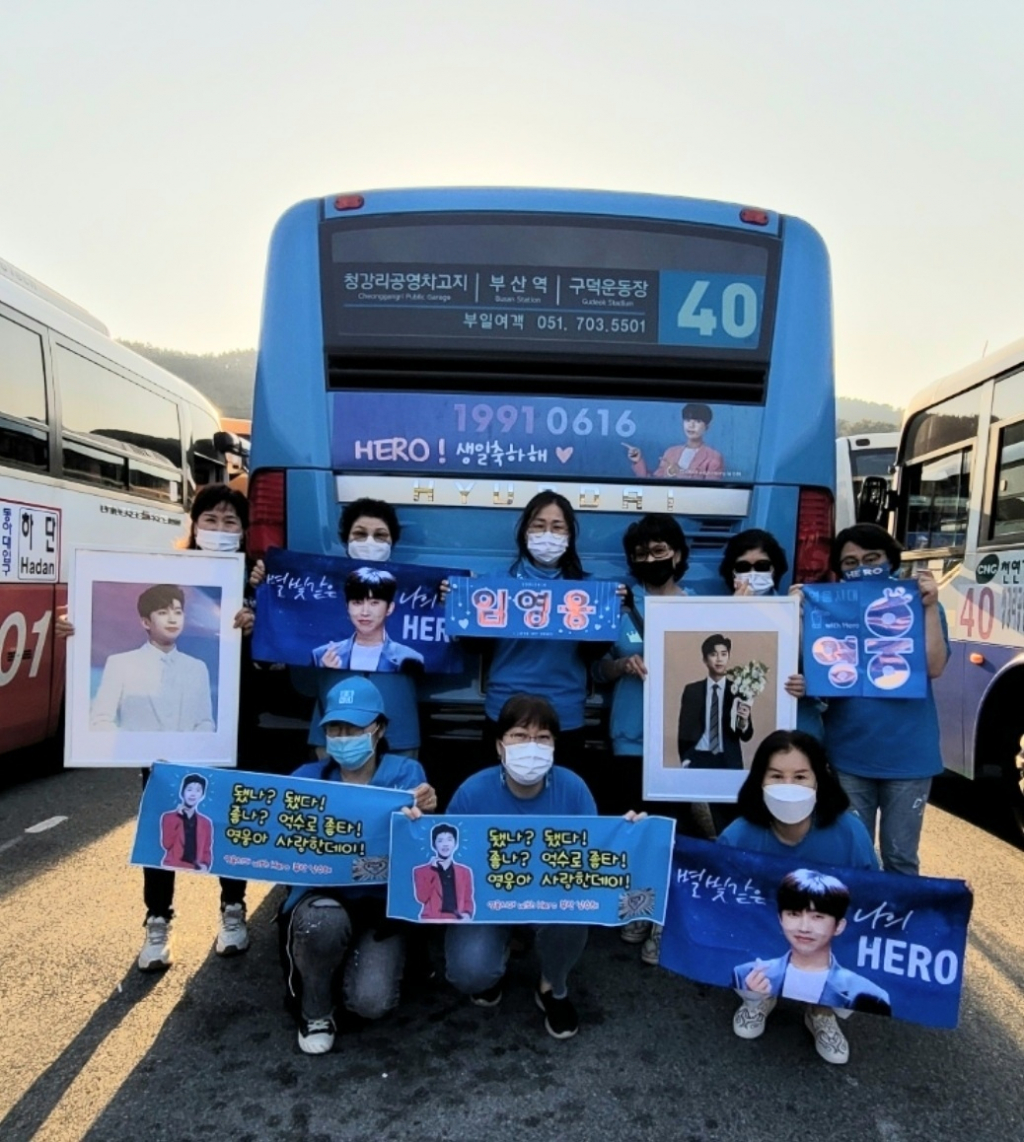 가수 임영웅의 생일(6월 16일)을 맞아 부산 남구, 수영구, 해운대구 지역 팬들이 생일 축하 버스 광고로 이를 축하한다.