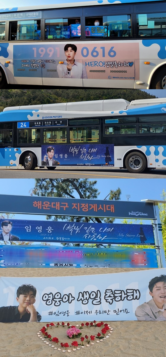 영웅시대 With Hero 부산 남수해는 임영웅의 생일을 기념하기 위한 생일 축하 버스 광고 버스를 부산 남구·수영구·해운대구(이하 남수해) 지역에서 진행한다.