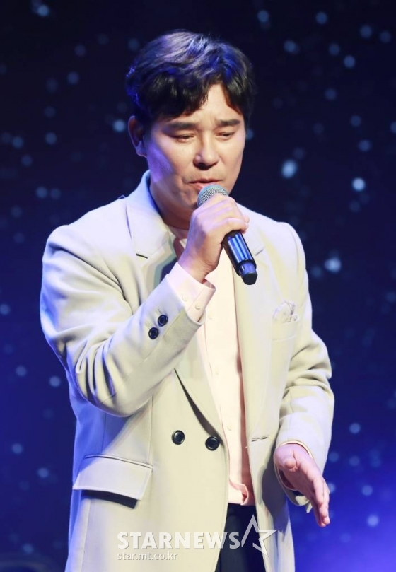 가수 임창정이 19일 오후 경기 파주시 예스아이엠엔터테인먼트에서 열린 16집 발매 쇼케이스에서 신곡을 선보이고 있다. /사진=이동훈 기자 photoguy@