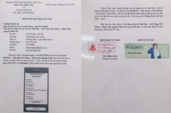 지민의 베트남 팬베이스 JiminCelina 도 나눔 기부에 동참했다.