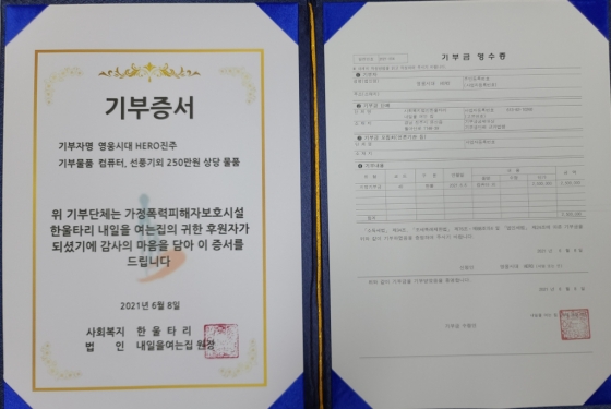 영웅시대 HERO 진주는 "일회성이 아닌 앞으로도 언제든 도움의 손길이 필요할 때 지속적으로 도움을 줄 계획"이라고 전했다.