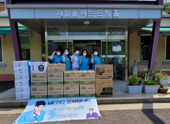 임영웅 팬카페 영웅시대 HERO 진주 회원들은 지난 8일 진주시 문산읍 월아산로 사회복지법인 한울타리 내일을 여는 집을 찾아 컴퓨터, 압력밥솥, 벽걸이선풍기 등 250만 원 상당의 물품을 기부했다. 의류, 휴지 등 생활용품과 동화책 등 아이들을 위한 물품도 전달했다.