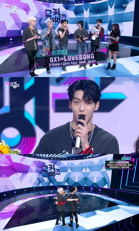 11일 오후 방송된 KBS 2TV '뮤직뱅크'에서는 투모로우바이투게더의 '0X1=LOVESONG(I Know I Love You)'(제로바이원러브송)이 방탄소년단의 'Butter'(버터)를 제치고 1위에 올랐다.