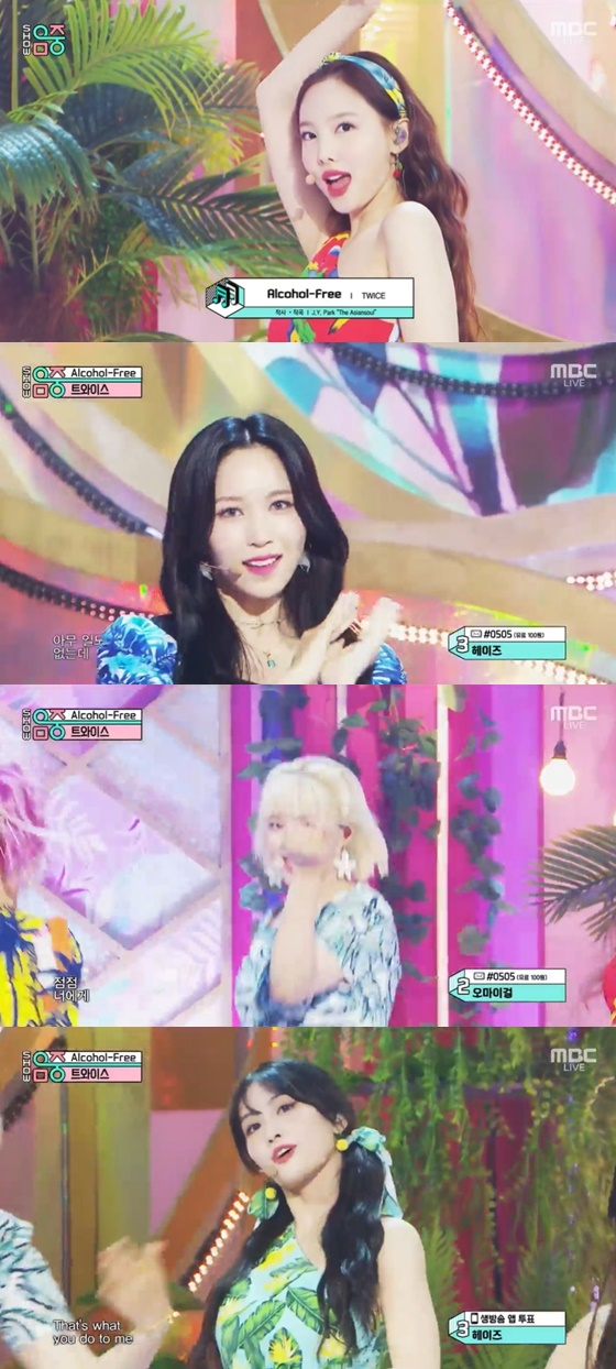 트와이스는 'Alcohol-Free'에 맞춰 컴백 무대를 선보였다. 이들은 하와이풍의 의상을 입고 청량한 매력을 자랑했다. 또한 트와이스만의 색깔을 표현해 시선을 끌었다. 'Alcohol-Free'는 JYP 대표 프로듀서 박진영이 작사, 작곡, 편곡을 맡았고 작곡가 이해솔이 편곡에 참여한 새로운 감각의 서머송이다. 보사노바에 힙합을 결합해 트와이스만의 색깔로 표현했고 가사에는 온 세상을 밝게 만드는, 사랑에 빠지는 마법 같은 순간을 담았다.